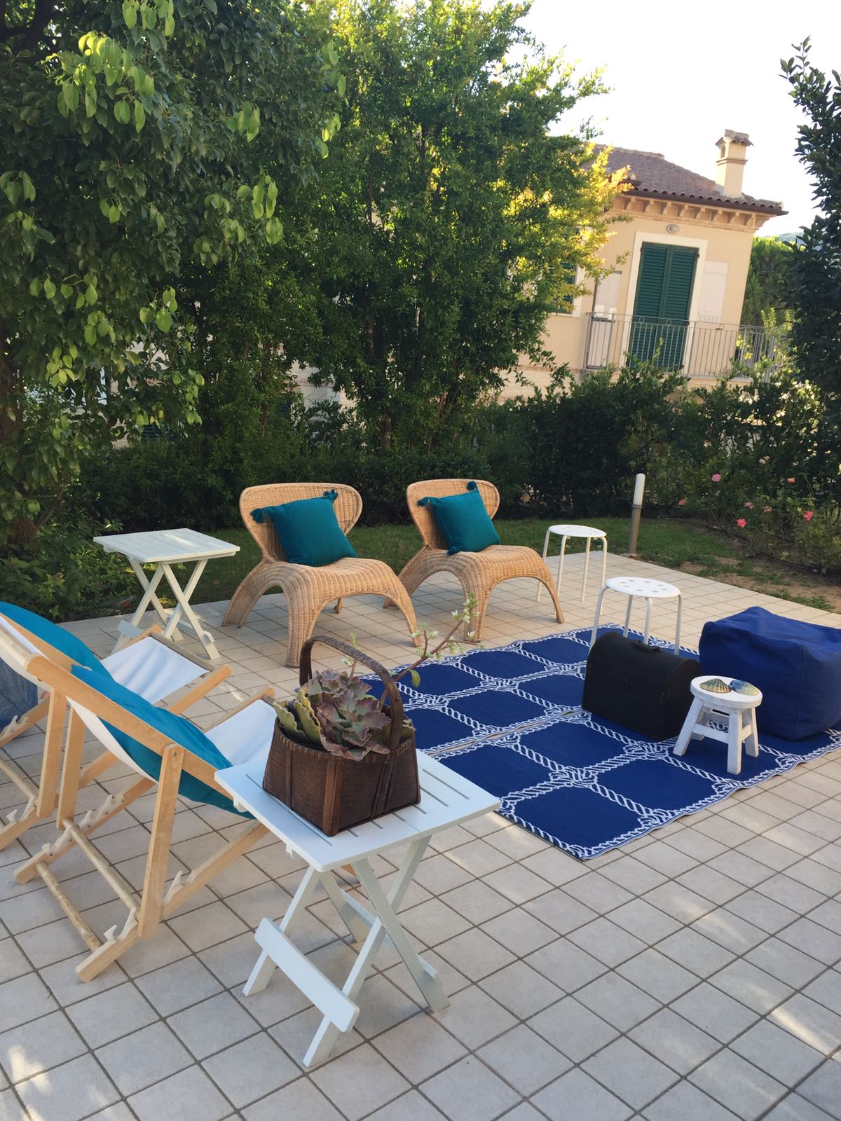 È presente anche una casetta in legno multifunzionale, perfetta per riporre oggetti personali o gli attrezzi per la manutenzione del giardino. Illuminazione esterna con faretti in acciaio Guzzini.