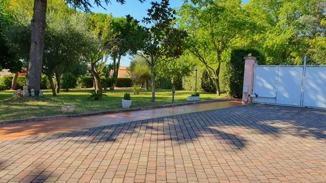 Il giardino è molto esteso e pianeggiante, infatti la corte esclusiva è ampia circa 2543 mq, e si può godere di una bella vista panoramica della zona.