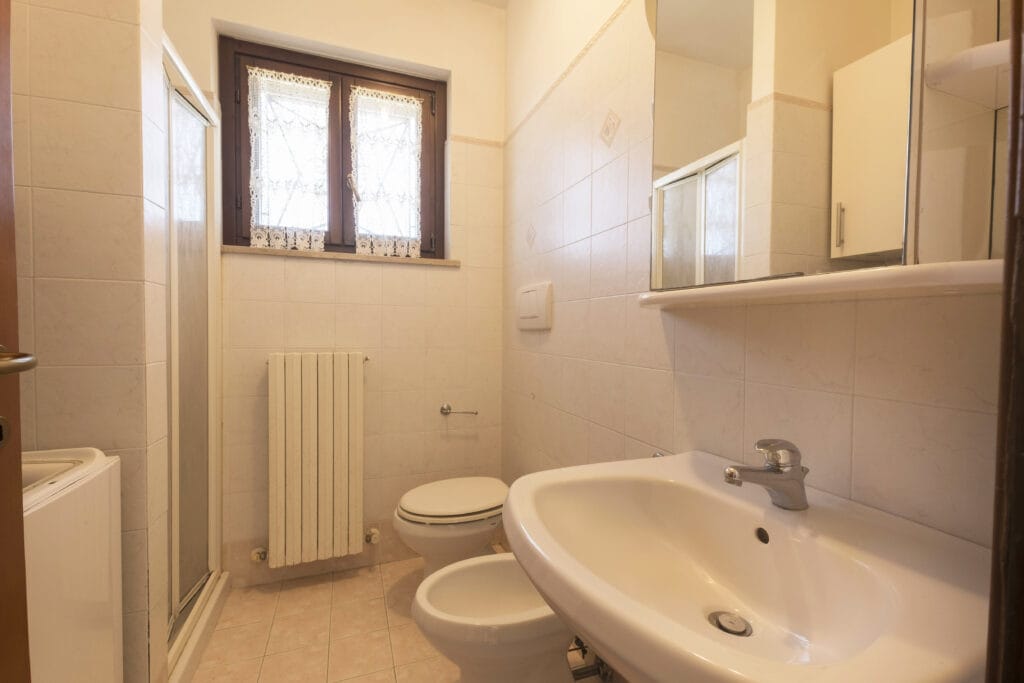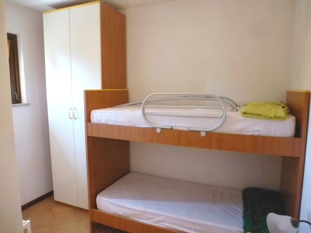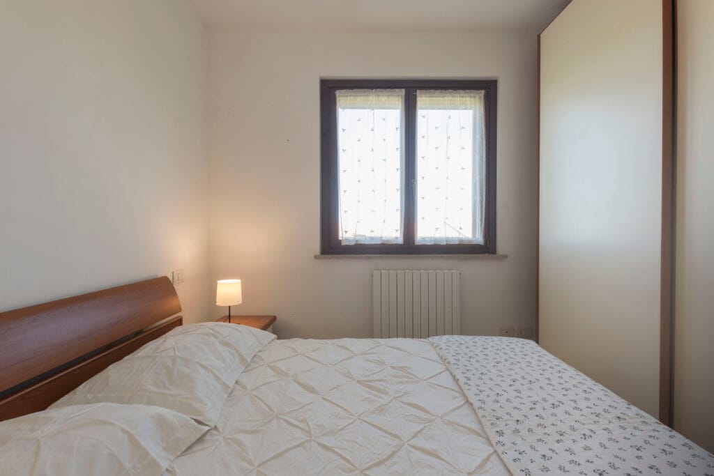 La zona notte è composta da una camera matrimoniale e una cameretta. Il bagno è completo e dotato di tutti i servizi, incluso il box doccia.